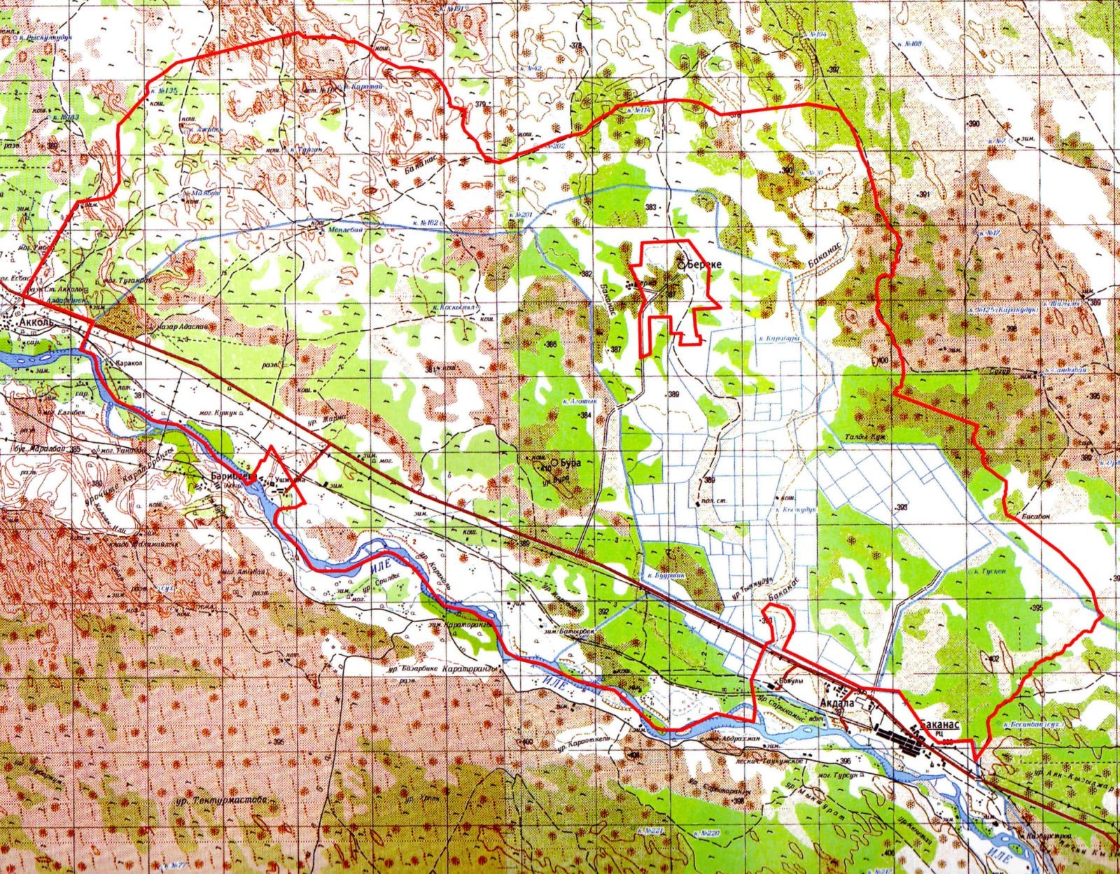 Охотничье хозяйство Б»аканасское», площадь 126244 га, расположено в юго-западной части Балхашского района Алматинской области.