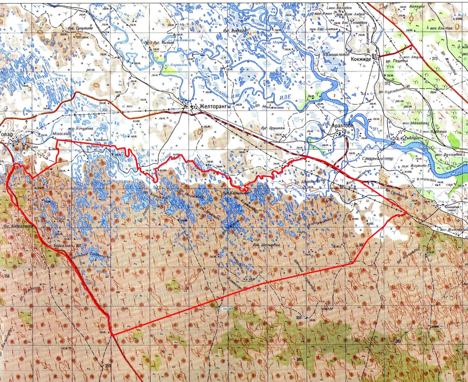 Охотничье хозяйство Топарское, площадь 45519 га, расположено в юго-западной части Балхашского района Алматинской области.